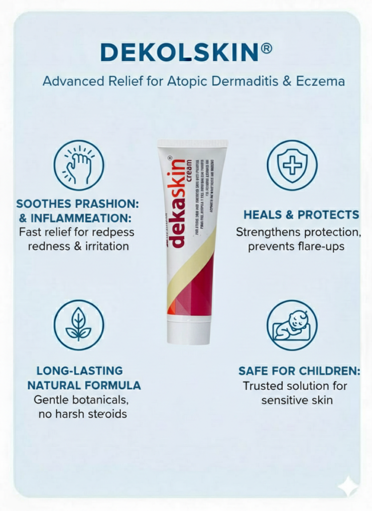 Reclaim comfort for your skin and your children. Dekaskin is a trusted dermatological solution specifically designed to manage Atopic Dermatitis and Eczema. By restoring the skin’s natural barrier, it puts an end to intense itching and active inflammation. Safe, effective, and economical, Dekaskin is the worry-free choice for everything from chronic eczema to sudden insect bites.