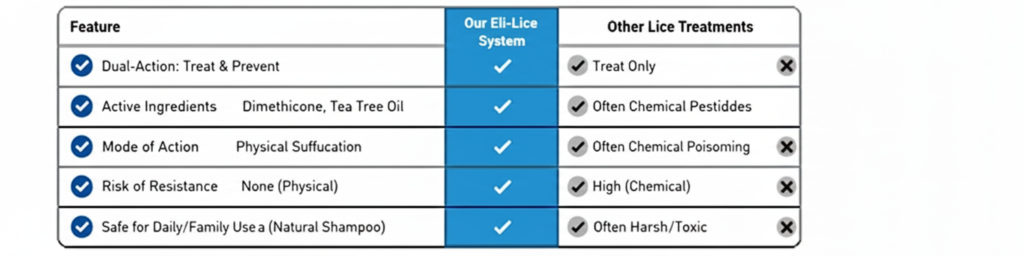 The Eli-Lice system works physically and naturally to provide medical-grade results.